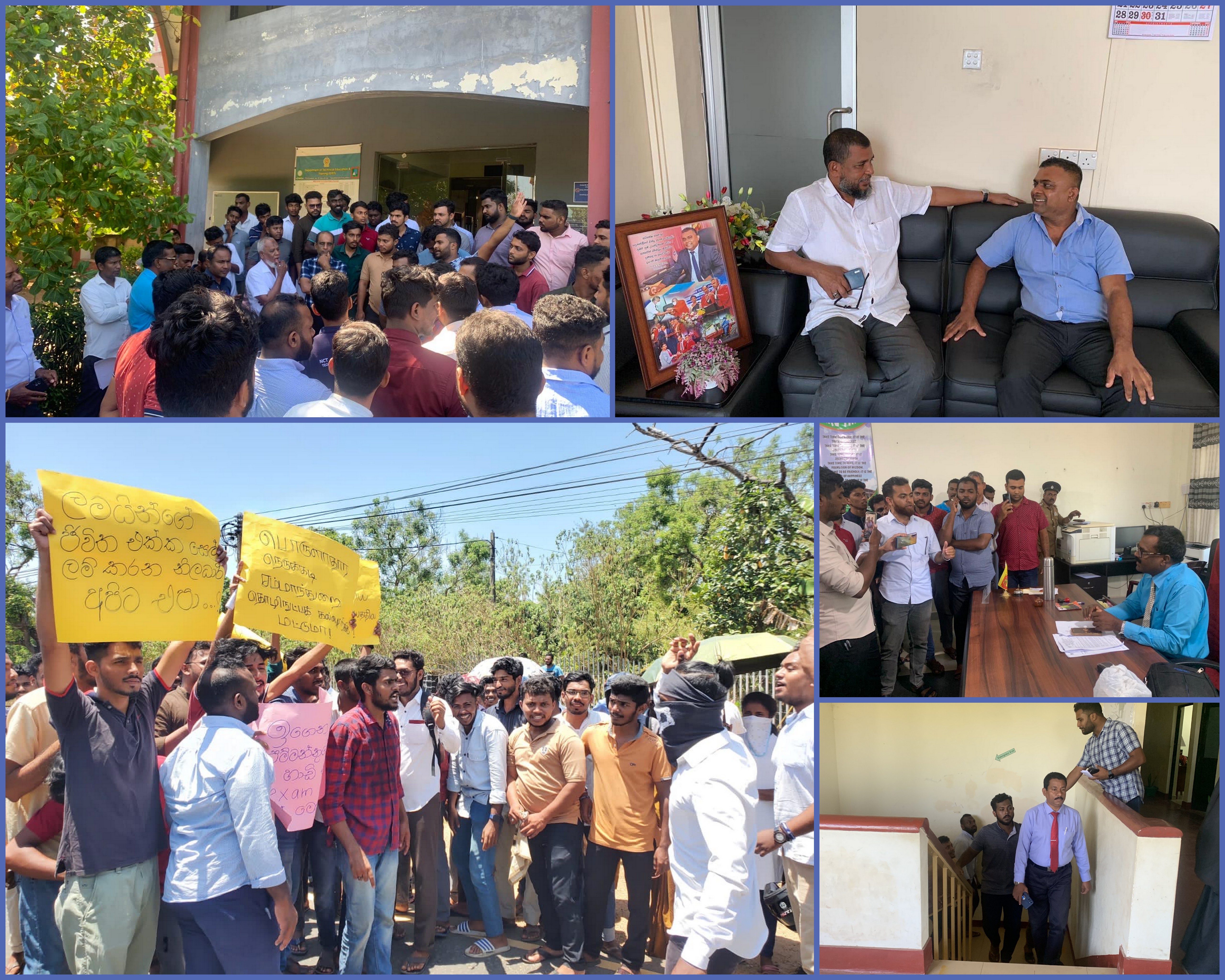சம்மாந்துறை தொழினுட்ப கல்லூரியில் நேற்று (03) இடம் பெற இருந்த பரீட்சை சரியான நேரத்தில் இடம்பெறாததால் அவ் இடத்தில் மாணவர்கள் போரட்டம் ஒன்றினை முன்னெடுத்தனர்.