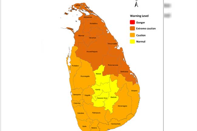 பல மாகாணங்கள் மற்றும் மாவட்டங்களில் மனித உடலால் அதிக அளவில் உணரக்கூடிய வெப்பம்இன்று (03) காணப்படும் என வளிமண்டளவியல் திணைக்களம் தெரிவித்துள்ளது.இதன்படி மேற்கு, சப்ரகமுவ, தெற்கு, வடக்கு, வடமத்திய மற்றும் வடமேல் மாகாணங்களிலும் மட்டக்களப்பு, திருகோணமலை, அம்பாறை மற்றும் மொணராகலை மாவட்டங்களிலும் இந்த நிலை காணப்படும் எனவும் வளிமண்டளவியல் திணைக்களம் தெரிவித்துள்ளது
