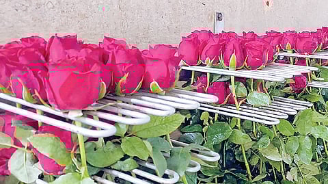 ஓசூர் அருகேயுள்ள பாகலூரில் இருந்து வெளிமாநிலத்துக்கு அனுப்புவதற்காக வைக்கப்பட்டுள்ள ரோஜாக்கள்.
